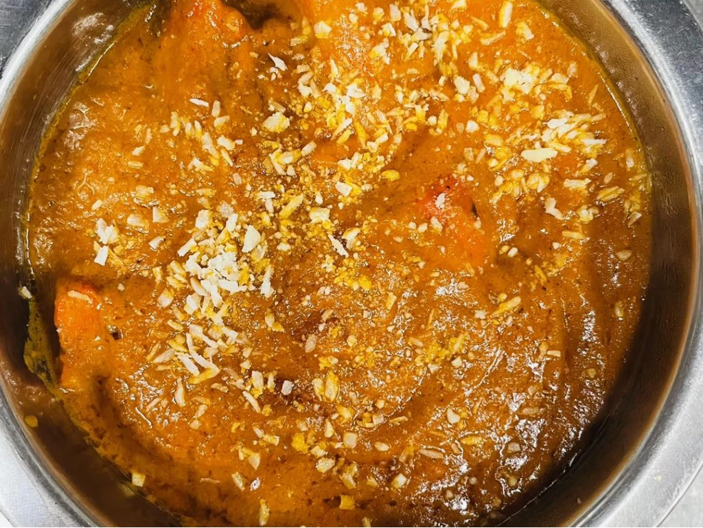 Kokt kött med karai sås. (Kyckling – 185:- Lamm – 195:- Biff – 185:-)